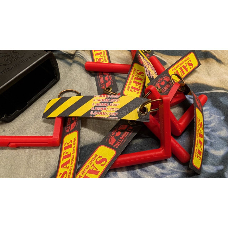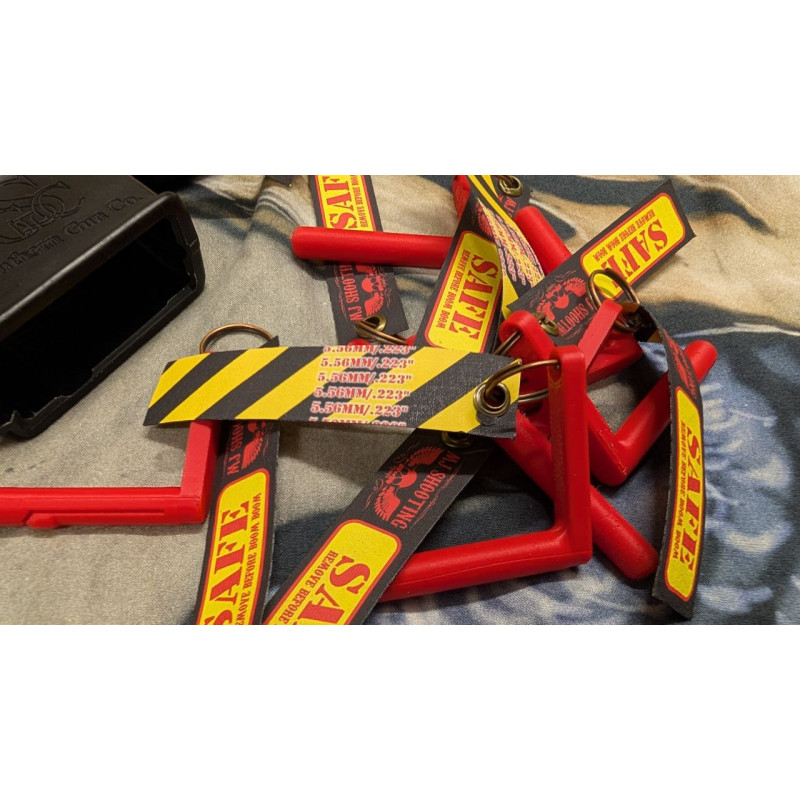 A pack of two safety flags for 5.56mm / .223" - enhance safety and the looks of your parked rifle.